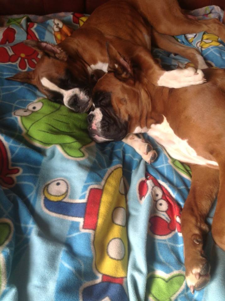 Но какой кайф когда тебя встречают две боксёрские морды. Такие они классные вместе. Сначала мы боялись, как они будут вместе. Тэсска жадная на игрушки, а Мия на еду. Но зря, подружились быстренько. Мия к нам не очень часто приезжает. Часто мы не выдерживаем.