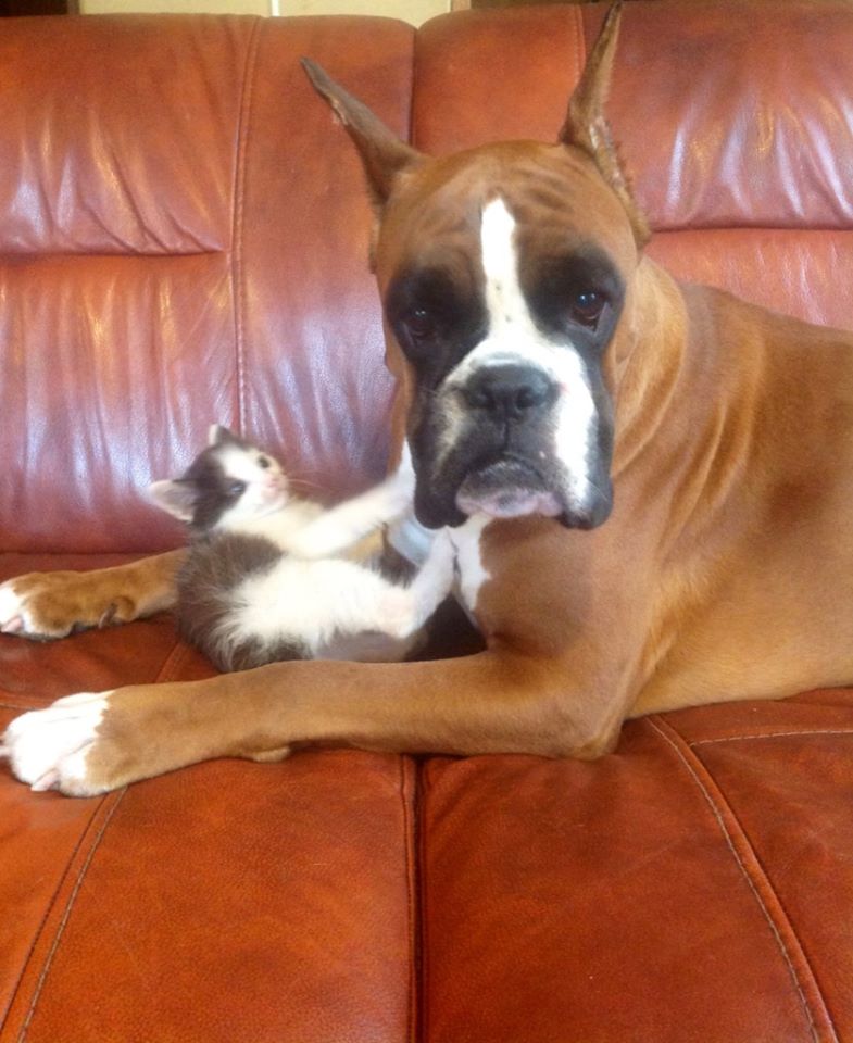 Здорово) Он просто котенок, но в душе боксер!))))))))))