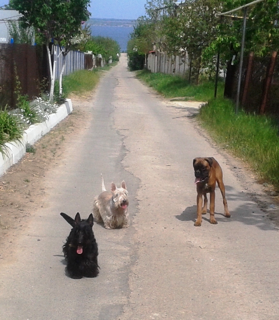 Вода холодная, 15-16 гр. Волны были , не сильные, но там дно в камнях размером как голова и больше. И камни колотые, острые. Арчи полез было вслед за мужем, а его волной сбивает. Мне только по второму разу лапы поранить не хватает. Вечером на лимане на песочке поиграет и поплавает. А на море будем другой пляж искать.