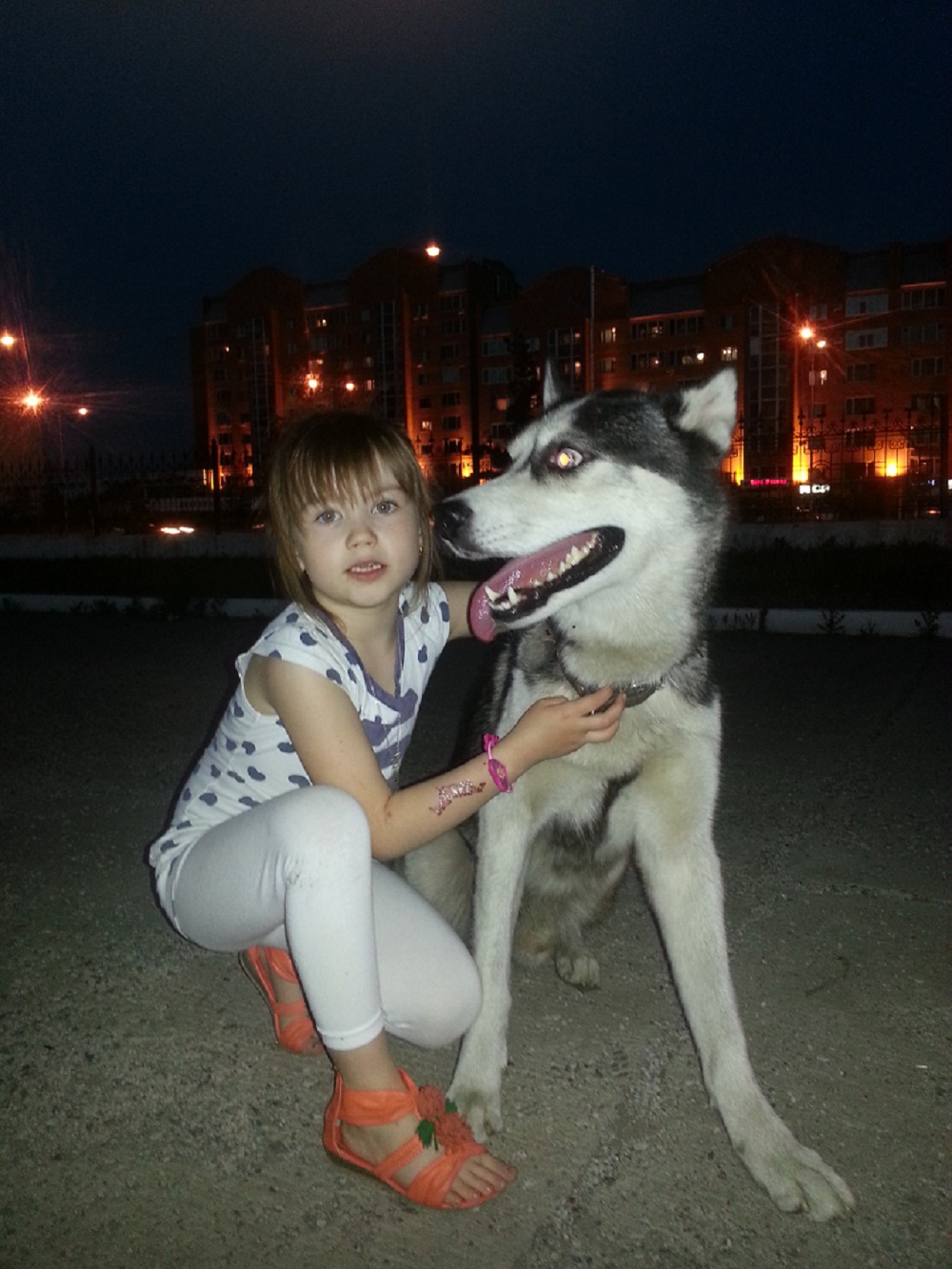 Да, он любит хасей!! Да и вообще собак)) А зимой мы ездим на санях!!!! Ездовой спорт))) А летом на велосипеде))) В общем здорово и весело))) А юный хендлер действительно растет в классной атмосфере!! Это дочь моего супруга и у нас бывает только на выходных и сейчас с нами, пока я в отпуске. И дома у мамы у нее тоже весело и собаки и кошки и даже белка!!! Воспитываем юнната)))