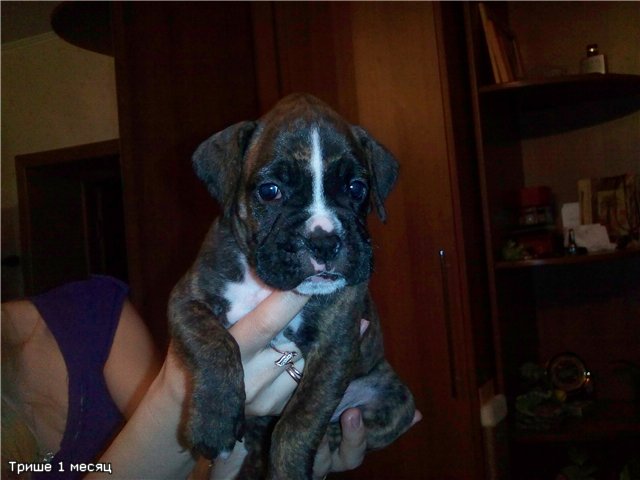 Добрый день, уважаемые форумчане-боксероводы! Решила присоединиться к вашей компании и познакомиться. Меня зовут Елена, мою девочку Триша. Родилась она 05,08,12. Это моя вторая собака. Первая, тигровая девочка, прожила с нами 13 лет. После того как ее не стало, дом просто опустел. Никто не встречал, не лез с поцелуями. Муж за 2 недели похудел на 8 кг.