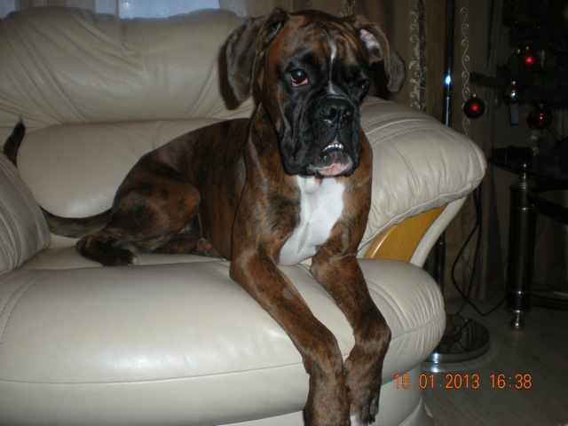 Спасибо всем большое! В мае месяце 2012 года нашей семье случилось пополнение, у нас поселился маленький меховой комочек 3 месяцев от роду по имени Стелла Элтон из Могучего Лгиона, я назвала ее Дана, Дануся или просто Дуся! Наш папочка впечатляющий здоровяк, умница и просто красавец Elton vom Munchhox, наша мамочка Хандия из Могучего Легиона! Дана с первого дня освоилась и разобралась что и где в доме находится, безошибочно установила месторасположения своей подстилки и место кормежки, совсем не грустила и спокойно спала даже в первую ночь. Дане скоро 1 год (26 февраля), она чудесный ребенок. Радует меня своим умом и сообразительностью. Я довольно давно мечтала о собаке, последние пару лет эти мысли менЯ вообще не покидали. Много чего читала выбирая породу и вот решилась на боксера, чему несказанно рада, мое ТИГРОВОЕ СЧАСТЬЕ радует меня каждый день! :mrgreen: ::)