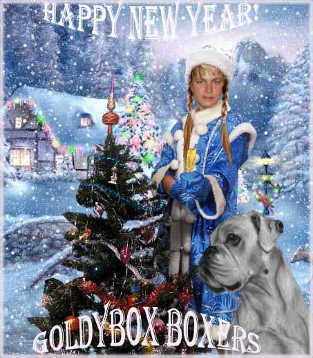 Мы с Диланом поздравляем всех форумчан с Новым Годом! Желаем чтоб следущий год стал для наших любимцев годом радости,дерзких побед и самых добрых эмоций! Спасибо Вам всем за Ваше общение и за теплоту,желаем форуму и дальше процветать и пополнять свои ряды любящими боксомамопапами!