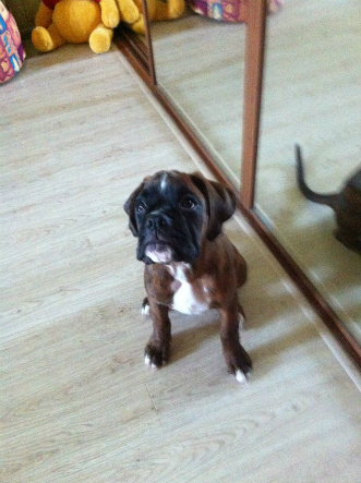 Спасибо всем большое! В мае месяце 2012 года нашей семье случилось пополнение, у нас поселился маленький меховой комочек 3 месяцев от роду по имени Стелла Элтон из Могучего Лгиона, я назвала ее Дана, Дануся или просто Дуся! Наш папочка впечатляющий здоровяк, умница и просто красавец Elton vom Munchhox, наша мамочка Хандия из Могучего Легиона! Дана с первого дня освоилась и разобралась что и где в доме находится, безошибочно установила месторасположения своей подстилки и место кормежки, совсем не грустила и спокойно спала даже в первую ночь. Дане скоро 1 год (26 февраля), она чудесный ребенок. Радует меня своим умом и сообразительностью. Я довольно давно мечтала о собаке, последние пару лет эти мысли менЯ вообще не покидали. Много чего читала выбирая породу и вот решилась на боксера, чему несказанно рада, мое ТИГРОВОЕ СЧАСТЬЕ радует меня каждый день! :mrgreen: ::)