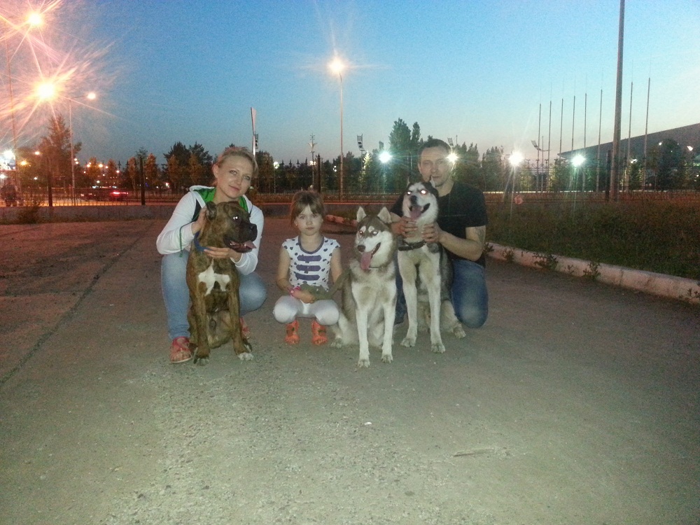 Да, он любит хасей!! Да и вообще собак)) А зимой мы ездим на санях!!!! Ездовой спорт))) А летом на велосипеде))) В общем здорово и весело))) А юный хендлер действительно растет в классной атмосфере!! Это дочь моего супруга и у нас бывает только на выходных и сейчас с нами, пока я в отпуске. И дома у мамы у нее тоже весело и собаки и кошки и даже белка!!! Воспитываем юнната)))