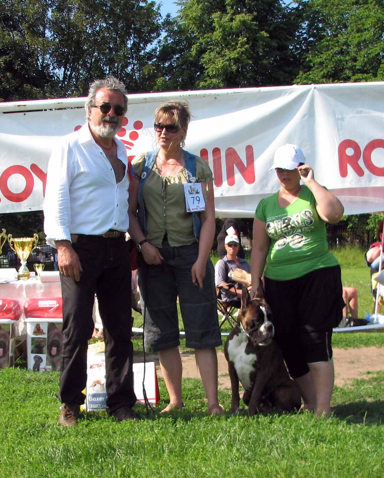 Просматривала фотки старые и нашла фотку Эшли с Балтик-боксера 2011 года в Таллине - в том году Эсперанца стала лучшей тигровой сукой, а в этом ее внучка Яркая Звезда - ЛЮ на том же Балтик Боксере в Тарту :?