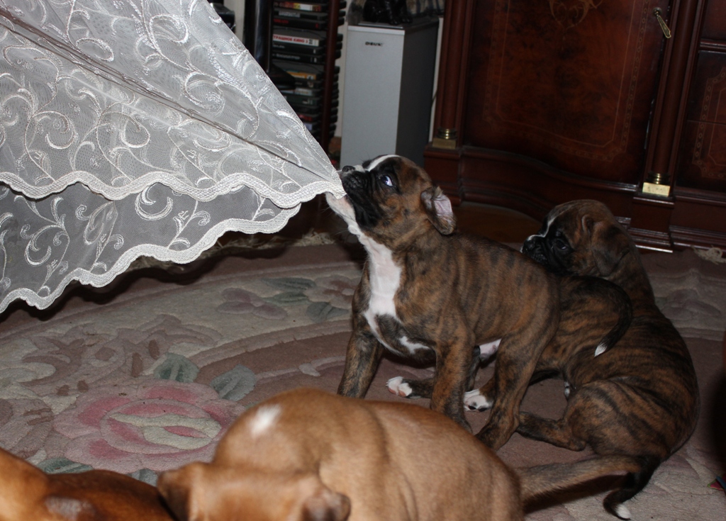 Как и все боксерята, они спят,шалят,играют,едят и..снова- спят и так по кругу! :roll: