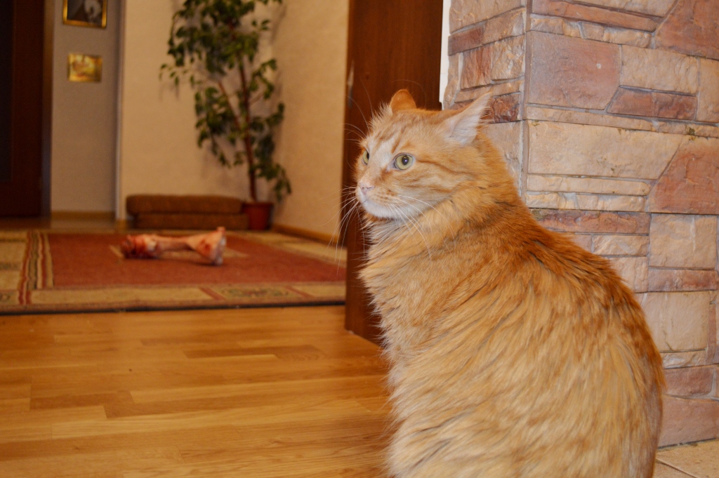 потом видит ни так ни так не получается, тогда придержит одной лапой