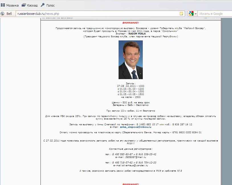 Раздел для результатов, анонсов, приглашений на выставки и обмена впечатлениями, фотографии с выставок.