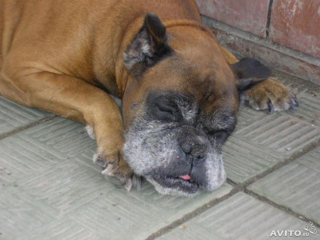 Найдена очень старая собака, порода боксер, кобель. На вид ухоженная, ласковая. Приблудился к офису (промзона за ПТО). Хозяин, отзовитесь! Собаке не выжить в таких условиях!