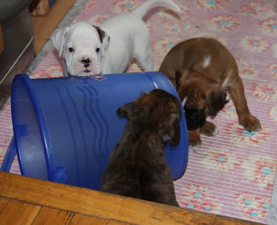 Как и все боксерята, они спят,шалят,играют,едят и..снова- спят и так по кругу! :roll: