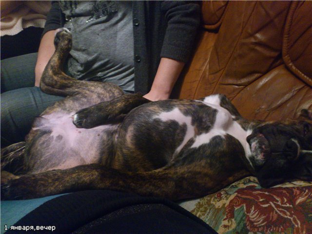 Добрый день, уважаемые форумчане-боксероводы! Решила присоединиться к вашей компании и познакомиться. Меня зовут Елена, мою девочку Триша. Родилась она 05,08,12. Это моя вторая собака. Первая, тигровая девочка, прожила с нами 13 лет. После того как ее не стало, дом просто опустел. Никто не встречал, не лез с поцелуями. Муж за 2 недели похудел на 8 кг.