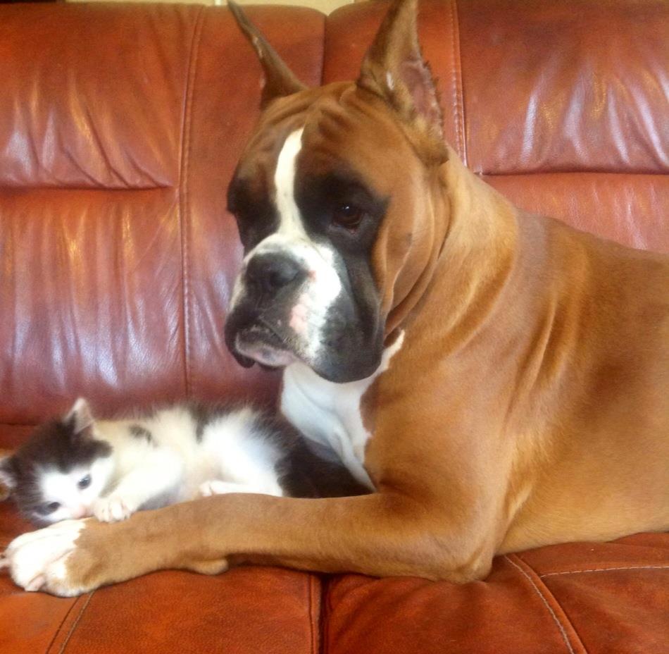 Здорово) Он просто котенок, но в душе боксер!))))))))))